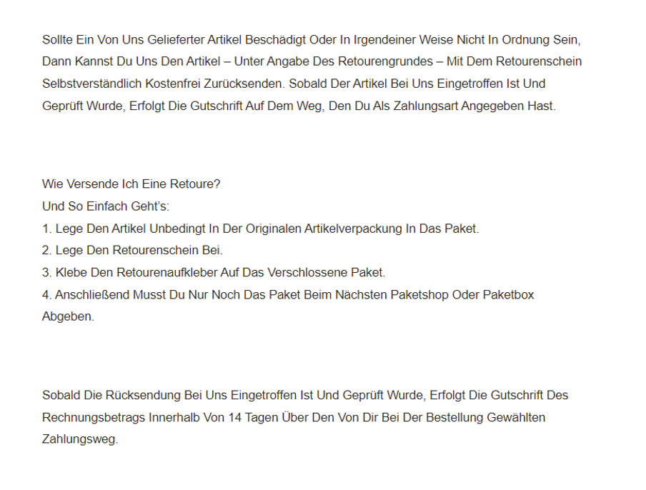 Fake online shops have no general terms and conditions (GTC). Or, to keep up appearances, you use copied or poorly translated terms and conditions.