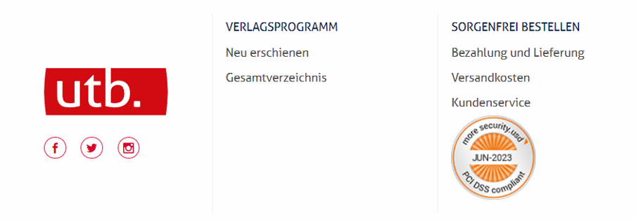 For example, in addition to the trust elements mentioned, you can also display an SSL symbol or, as at UTB.de, the PCI-DSS seal.