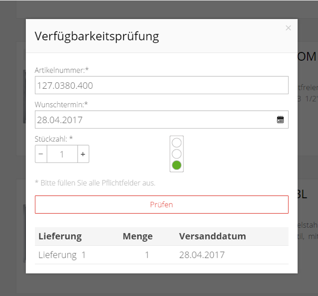 Abb. 1: B2B-Shop von FRANKE: Verfügbarkeitsprüfung in Echtzeit per BAPI Call.