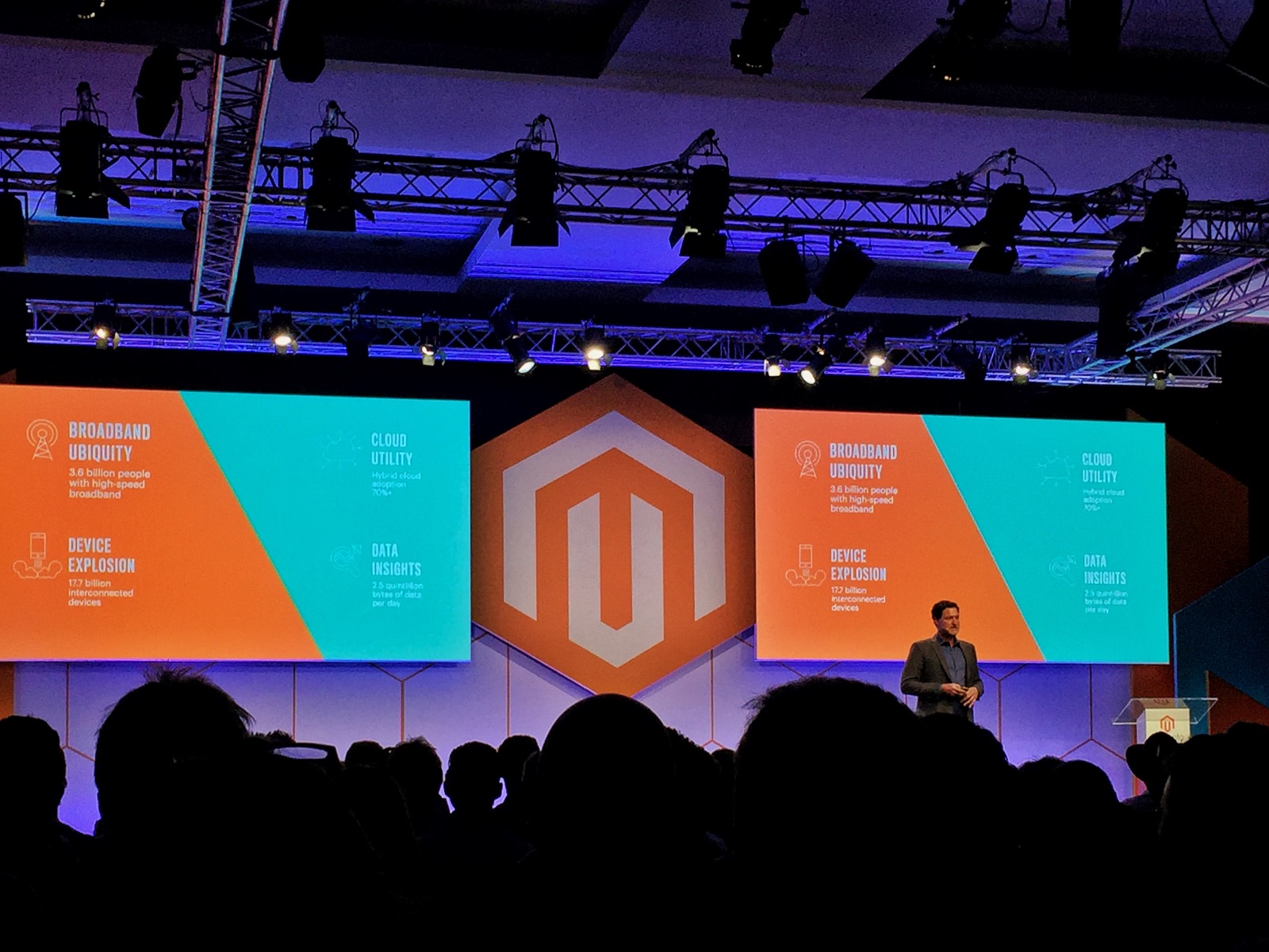 Innerhalb der beiden General Sessions standen unter anderem CEO Mark Lavelle (Magento Commerce) und Paul Boisvert, VP of Product Management (Magento Commerce) auf der Bühne. Aktuelle Zahlen der stetig wachsenden Magento-Community machten an dieser Stelle einmal mehr den enormen Erfolg der Magento-Plattform deutlich. Magento wurde zuletzt im diesjährigen „Magic Quadrant for Digital Commerce Report“ von den Marktforschern von Gartner zum Leader heraufgestuft!