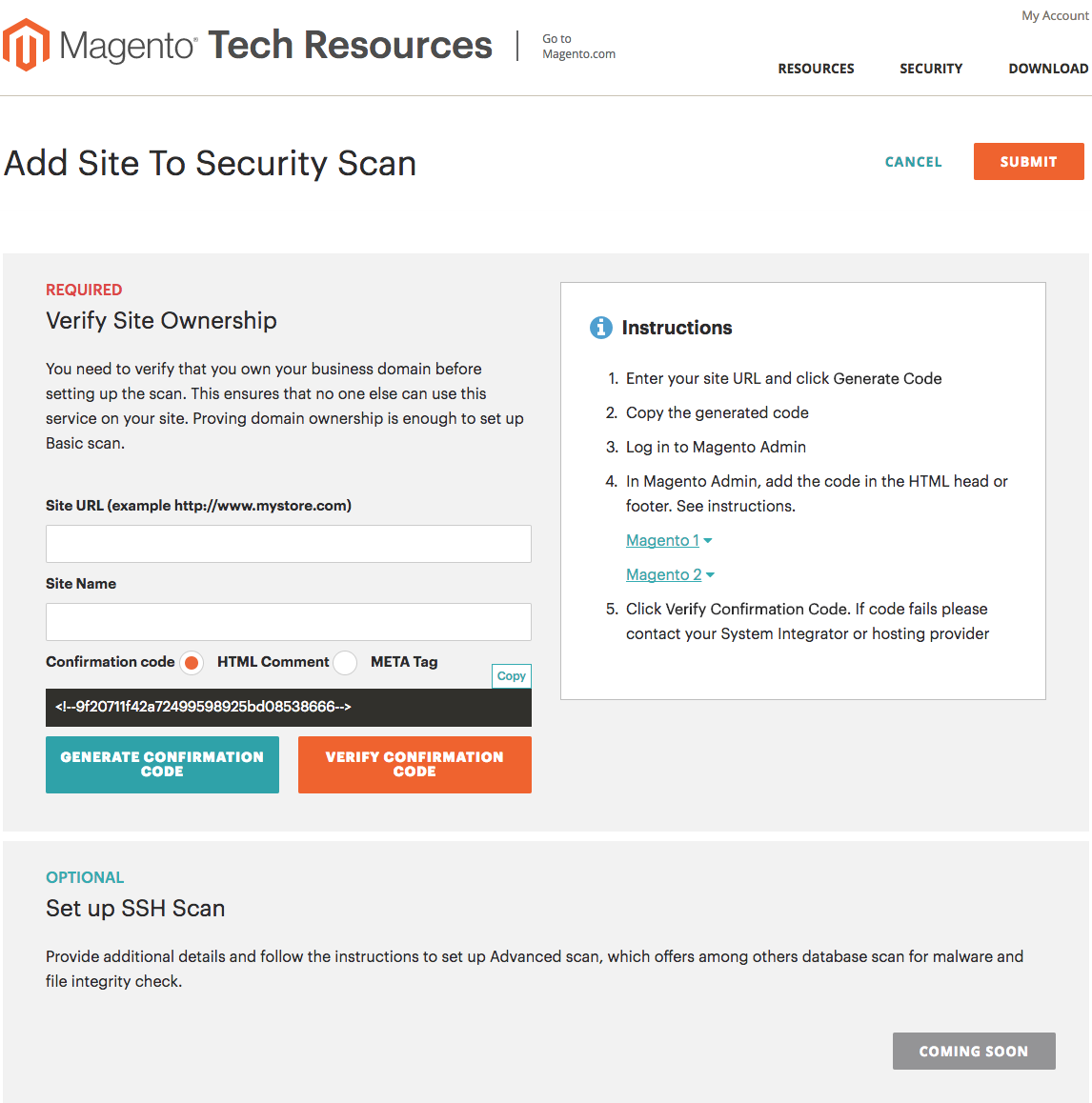Um den angebotenen Service nutzen zu können, müssen Sie innerhalb Ihres Magento Kontos unter account.magento.com zunächst einen kurzen Verifizierungsprozess durchführen. Dieses Prozedere muss für jede Magento-Seite einzeln erfolgen.