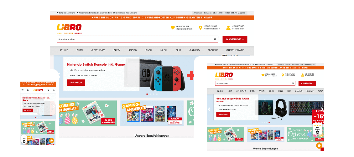 In addition, LIBRO required a platform that already offers a maximum of functionality in the standard scope of delivery. At the same time, comprehensive REST API coverage was necessary to facilitate integration with numerous third-party systems such as PIM, CRM, ERP, store pickup reservation system, loyalty, payment, search or online marketing. In addition, the support of a headless frontend (PWA) played a central role.