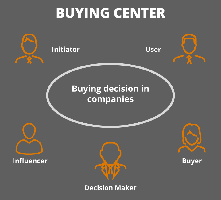 - In addition, the purchasing decision is never made alone, especially in the case of large to very large investments. In companies, a so-called buying center is formed. This is a group of people consisting of various participants - for example, project managers, buyers, controllers and the management.