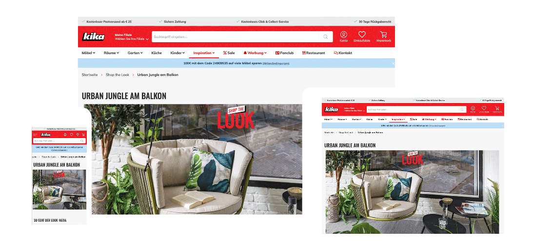 The MVP of the new kika online store was rolled out in October 2020 - and thus fell in the first winter of the global Corona pandemic with its lockdowns and temporary store closures. The flexibility of Adobe Commerce has enabled kika to react flexibly to the regularly changing requirements for retail - and to be a reliable furnishing partner for kika customers even in difficult times. Customers could benefit from free delivery or pick up their new furniture safely from a nearby furniture store using customized Click&Collect offers.
